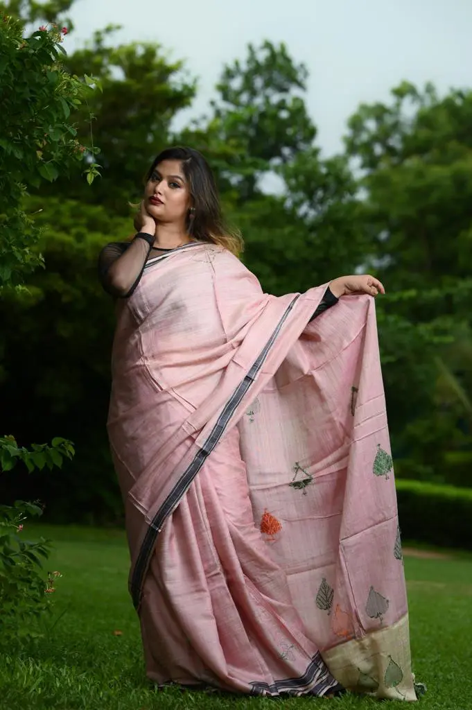 Pallu is the decorated end of the saree and you can drape it as per your choice. The length of the pallu can also vary according to your taste. Covering your left shoulder , the pallu down through your back down to the back of your knees.